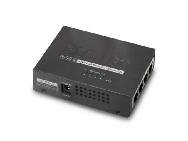 PLANET HPOE-460 4-Port 802.3at 30W High Power over Ethernet Injector Hub - 120W External Power Adapter
