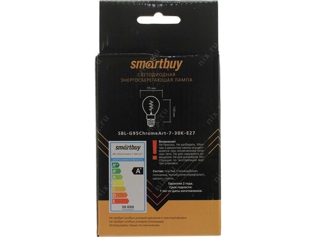 Smartbuy SBL-G95ChromeArt-7-30K-E27 (E27, 420 люмен, 3000К, 7Вт, 220-240В)