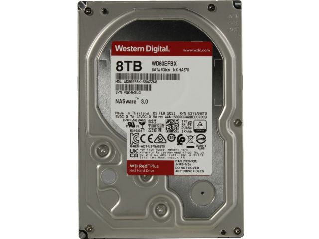 HDD 8 Tb SATA 6Gb/s Western Digital Red Plus WD80EFBX  3.5  7200rpm 256Mb