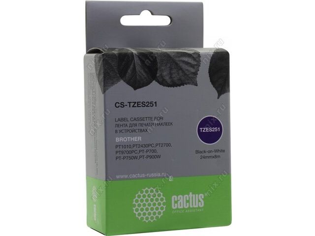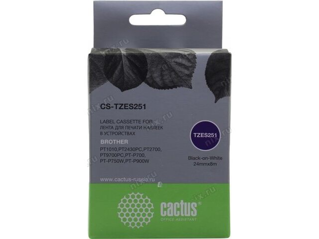 Cactus CS-TZES251 лента для печати этикеток (ширина 24мм, 8м, Black on White) для Brother