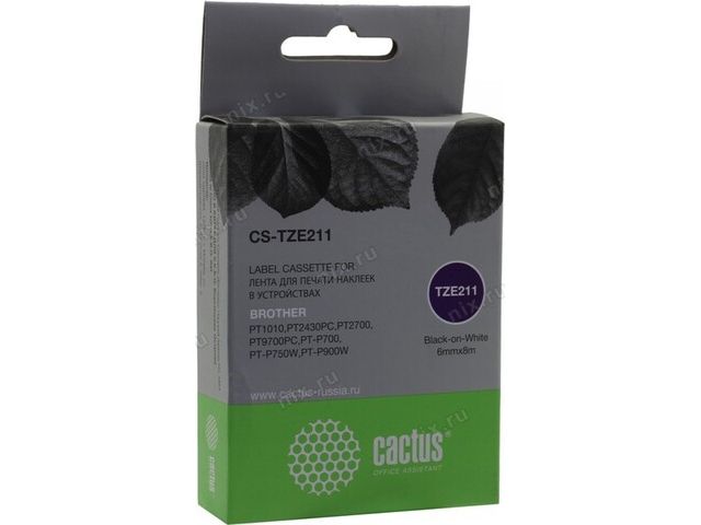 Cactus CS-TZE211 лента для печати этикеток (ширина 6мм, 8м, Black on White) для Brother