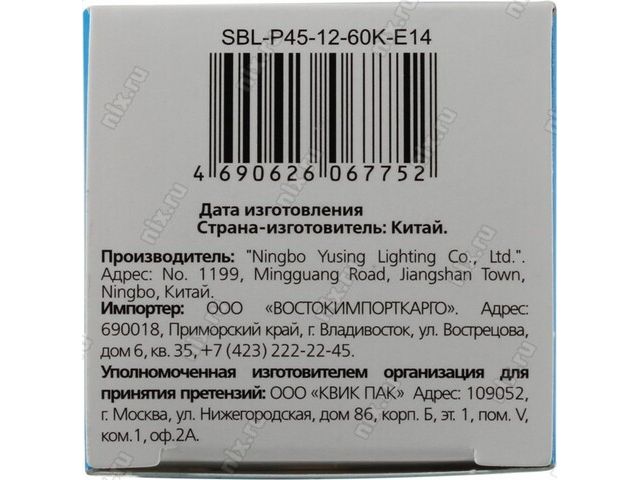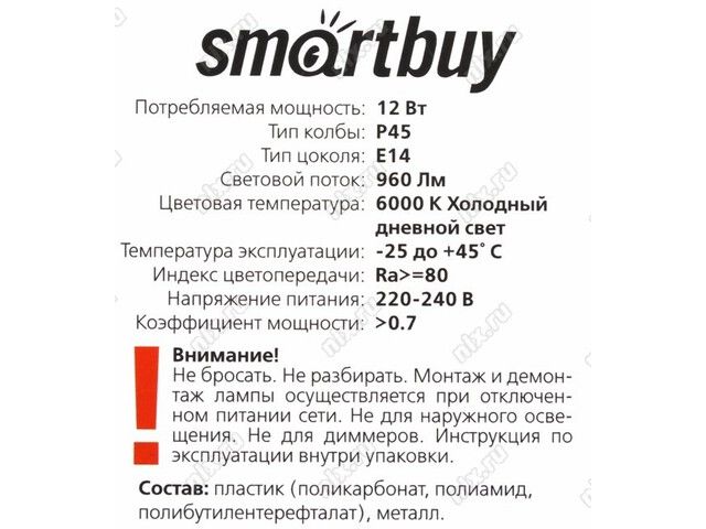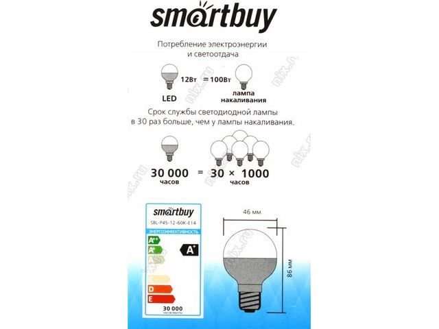 | Лампа светодиодная SmartBuy SBL-P45-12-60K-E14 |
