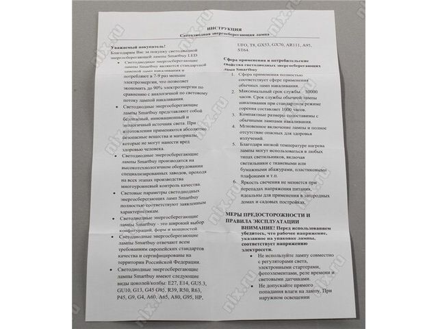 | ПРЕДУПРЕЖДЕНИЕ | Некоторые лампы обладают плавающими характеристиками и могут незначительно поменять характеристики с очередной поставкой. Характеристики и фотографии, приведенные нами, имеют справочный характер и могут отличаться при получении. Просьба проверять соответствие товара при выдаче. |