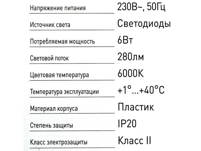 Ultraflash UF-711 C01 белый Настольный светильник (280 люмен, 6000K, 6Вт, 230В)