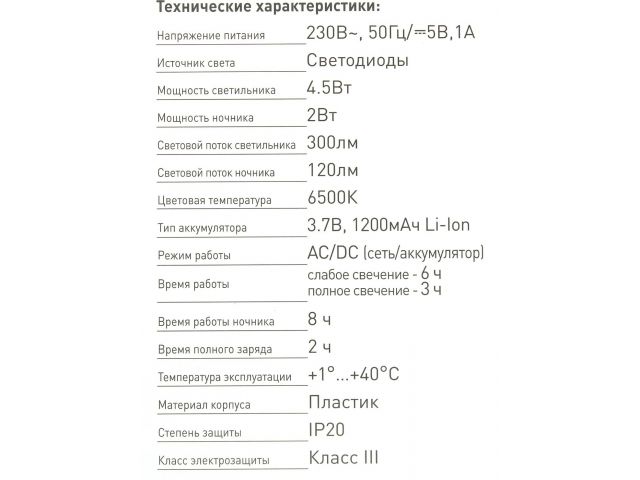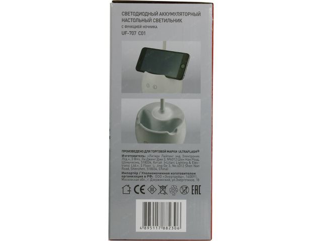 Ultraflash UF-707 C01 белый Настольный светильник аккумуляторный (300 люмен, 6500K, 4.5Вт, Li-Ion)