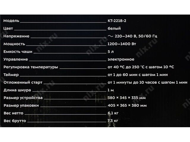 Kitfort KT-2218-2 белый Аэрогриль (1400Вт, 5 л, LCD)