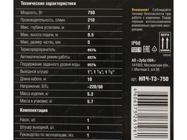 | Насос погружной дренажный ЗУБР Professional / Профессионал НПЧ-Т3-750 |