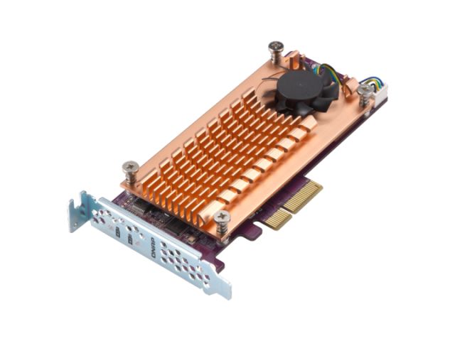 Низкопрофильная плата расширения для установки 2-х M.2 SATA накопителей в совместимые NAS Qnap. Плата имеет интерфейс PCIe Gen 2 x2 и активное охлаждение