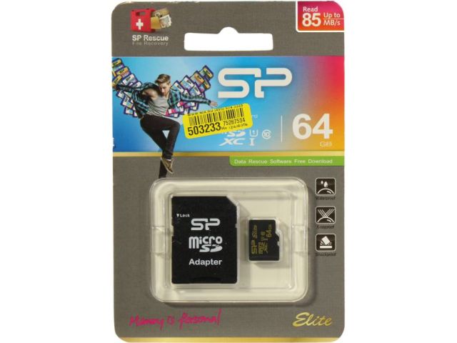 Silicon Power SP064GBSTXBU1V1GSP microSDXC Memory Card 64Gb UHS-I U1 Class10+ microSD-- SD Adapter