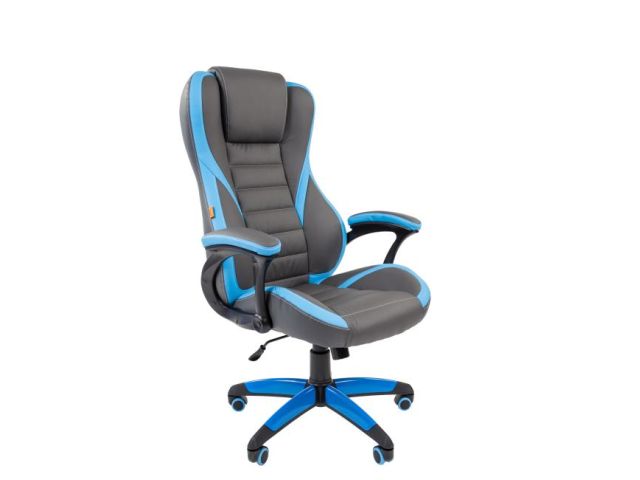 Игровое кресло Chairman game 22 серый/голубой (экокожа, регулируемый угол наклона, механизм качания)