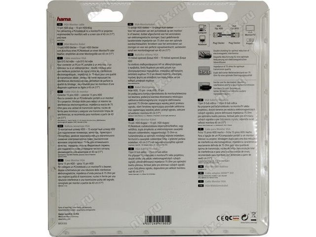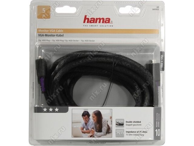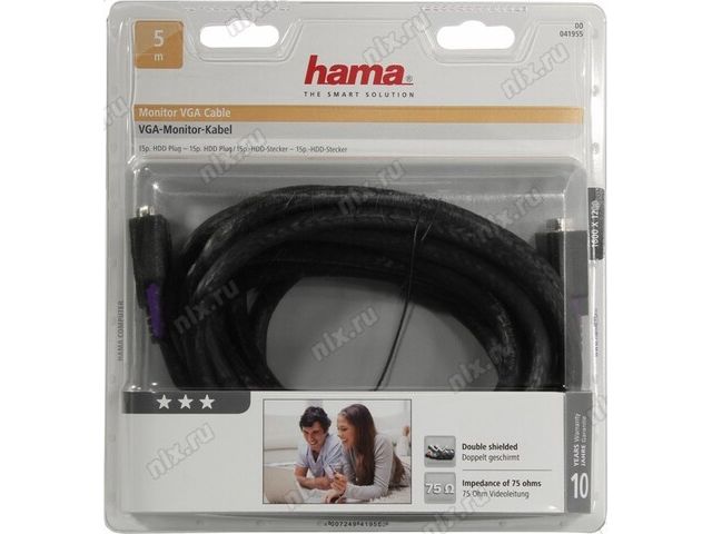 Hama 41955 Кабель монитор - SVGA card (15M -15M) 5м 1 фильтр