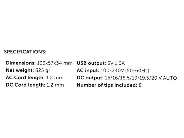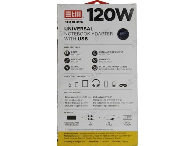 STM BLU120 блок питания (15-20V, 120W, USB)+8 сменных разъёмов питания