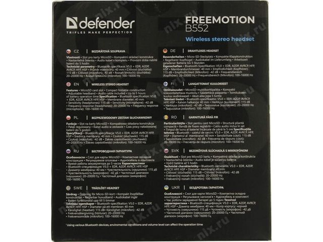 Наушники с микрофоном Defender FreeMotion B552 (Bluetooth5.0, MP3, microSD, с рег.громкости) 63552