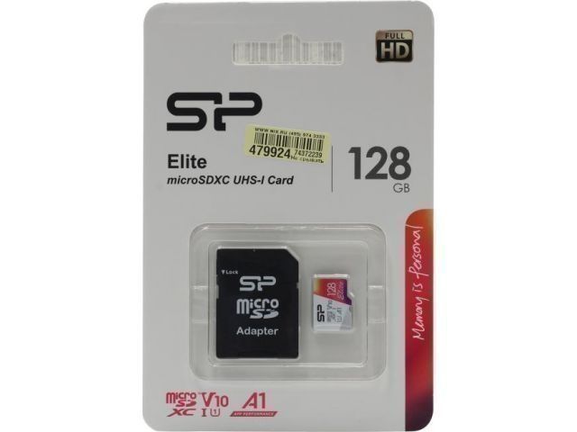 Карта памяти Silicon Power Elite SP128GBSTXBV1V20SP microSDXC A1, V10, UHS-I Class 1 (U1), Class 10 128 ГБ +microSD- SD адаптер