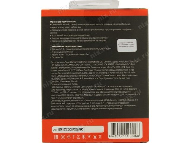 Ritmix BTR-100 Автомобильный Bluetooth-ресивер (питание от USB)