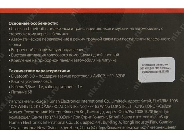 Тип оборудованияУстройство громкой связи для автомобиля