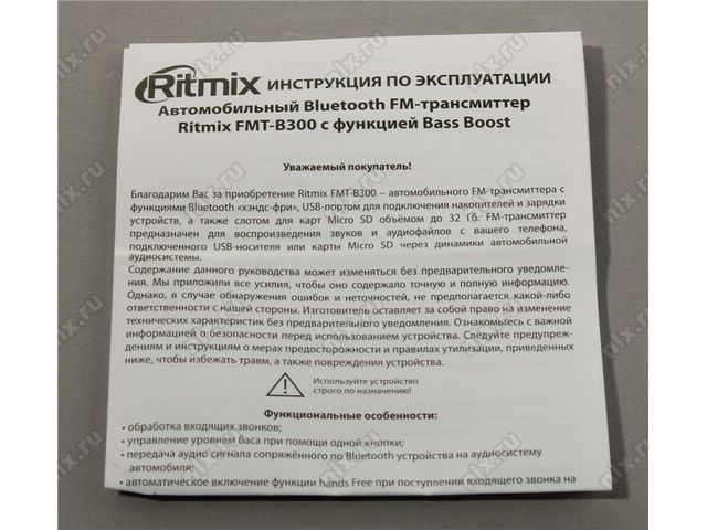 | FM-трансмиттер с Bluetooth Ritmix FMT-B300 |