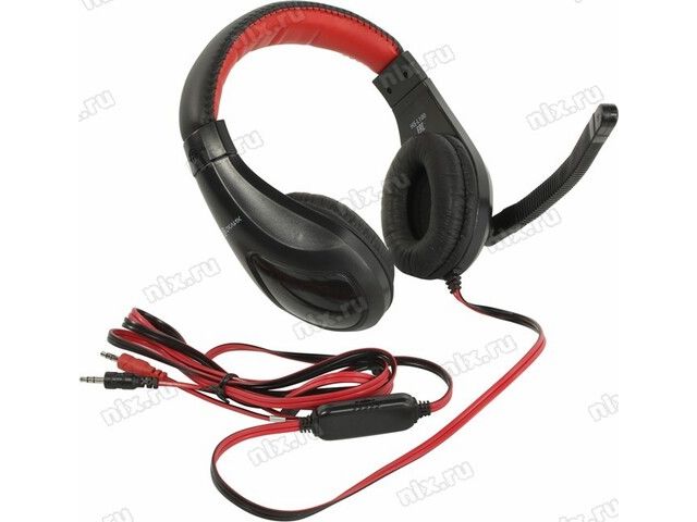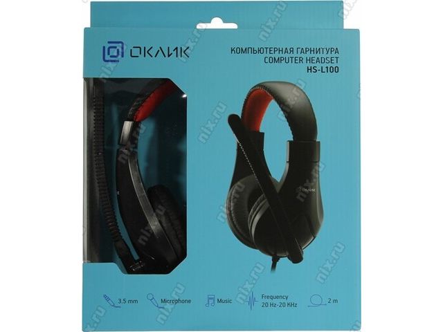 Наушники с микрофоном OKLICK HS-L100 Black-Red (шнур 2м, с регулятором громкости) 359485