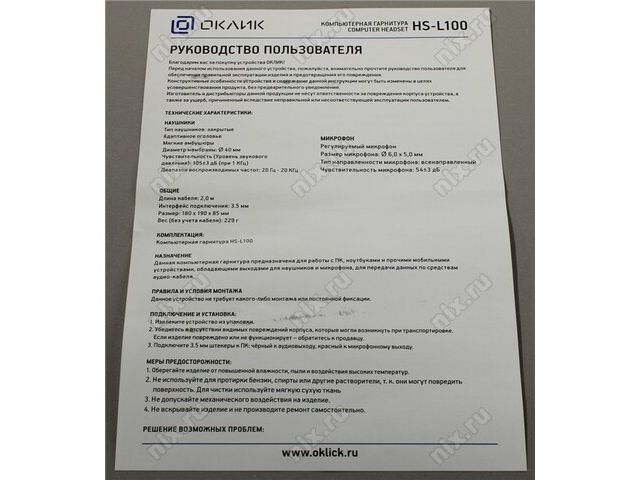Частотный диапазон наушников20 Гц ~ 20 кГц