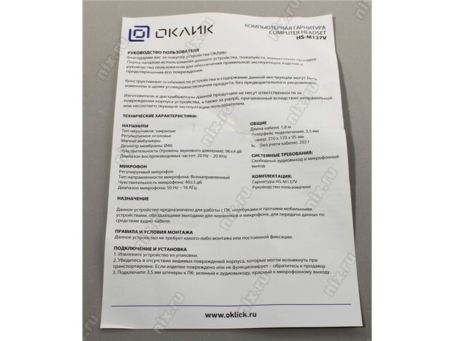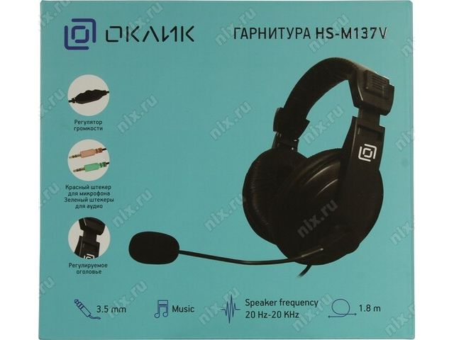 Наушники с микрофоном OKLICK HS-M137V Black  (шнур 1.8м) 614046