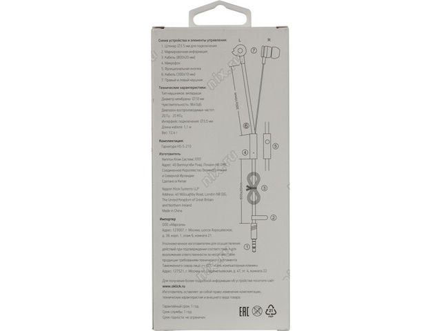 Наушники с микрофоном OKLICK HS-S-210  White (шнур 1.1м) 374402