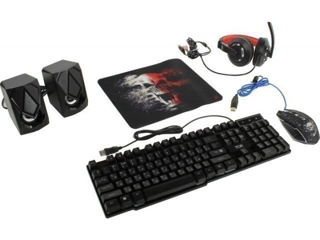 | Комплект клавиатура + мышь + гарнитура + колонки + коврик Defender TOR |