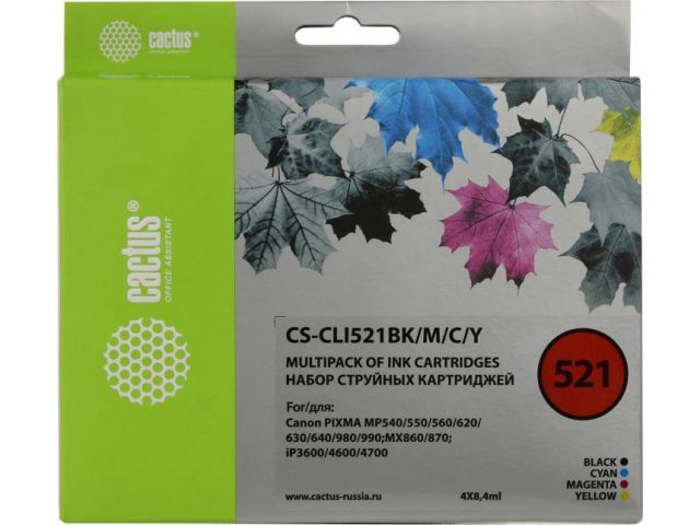 Картридж Cactus CS-CLI521BK/M/C/Y для Canon PIXMA MP540/550/620/630/640/980/990,MX860, iP3600/4600/4700
