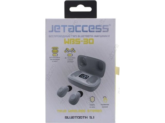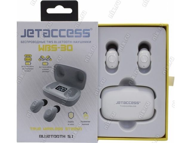 Наушники с микрофоном JETACCESS WBS-30 White  (Bluetooth5.1, с регулятором громкости)