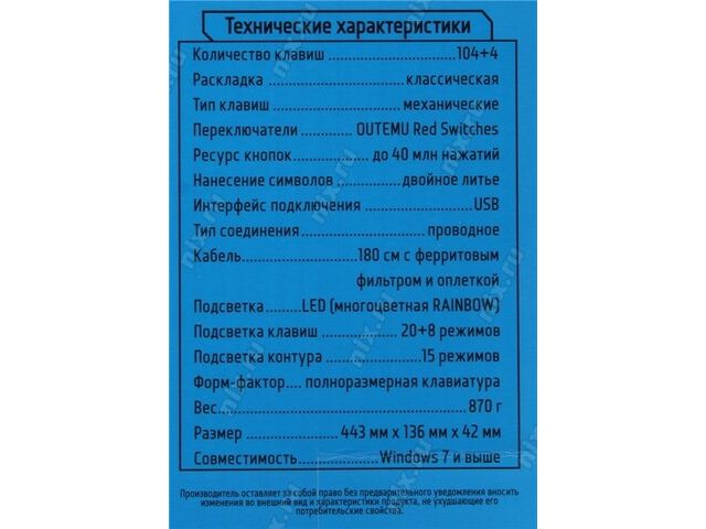 Тип оборудованияМеханическая клавиатура