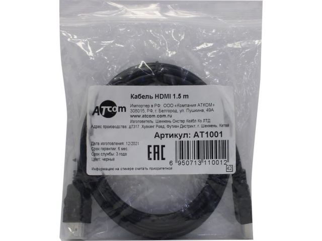 ATCOM AT1001 Кабель HDMI to HDMI (19M -19M) 1.5м