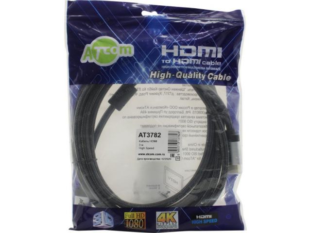 ATCOM AT3782 Кабель HDMI to HDMI (19M -19M) 3м ver2.0 2 фильтра