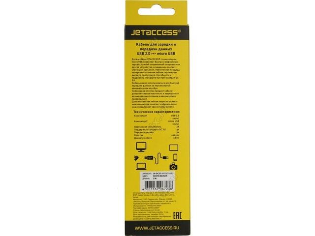 JETACCESS JA-DC27 2м White Кабель USB 2.0 AM -  micro-B 2м