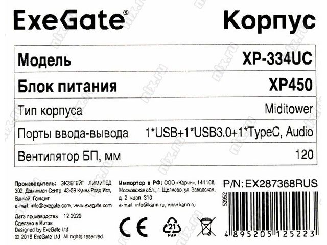 | Корпус Miditower ExeGate XP-334UC ATX 450 Вт |