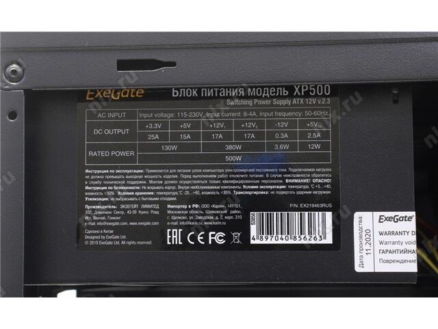 | Благодаря блоку питания мощностью 500 Вт, вы можете быть уверены в надежной работе вашего компьютера. Расположение блока питания в верхней части корпуса обеспечивает оптимальное охлаждение и эффективное управление теплом. |