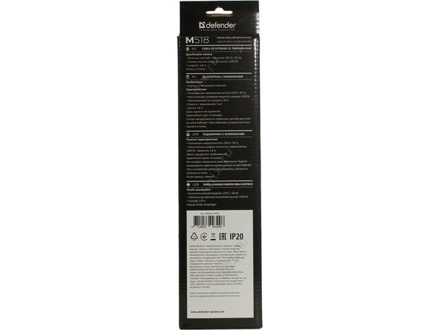 Сетевой удлинитель 2.2 кВт Defender M518 5 розеток евростандарт с заземлением 1.8 метра