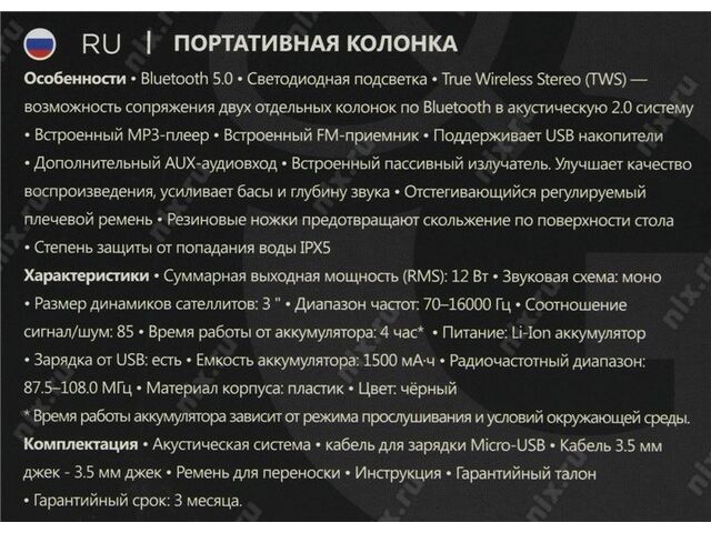 Колонка Defender G28 (12W, FM, USB, BT, Li-Ion) 65128