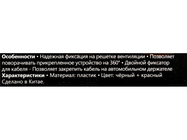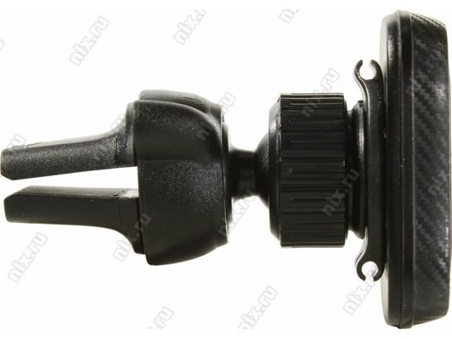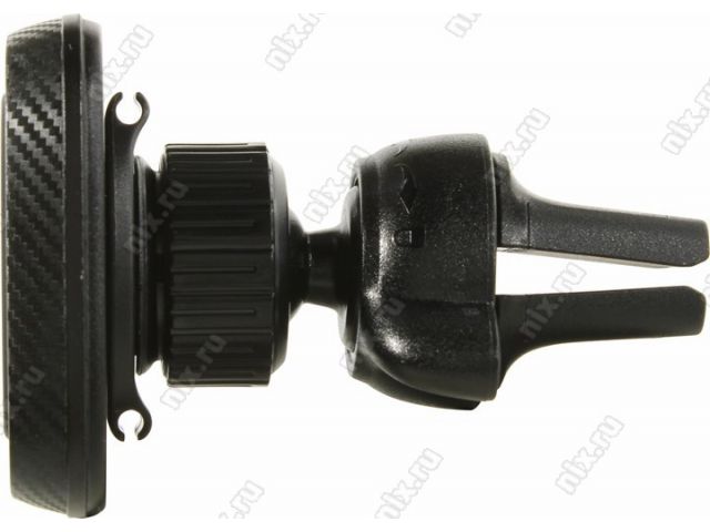 Универсальный магнитный автомобильный держатель с крепление на решетку вентиляции, смартфон крепится к держателю с помощью металлической пластины, которая приклеивается к его задней стороне или просто закладывается внутрь чехла. В комплект входят две пластины разного размера. К особенностям крепления можно отнести малый вес и размер, особую конструкцию, которая не повреждает решетку вентиляции и возможность использовать её в качестве подставки вне автомобиля.