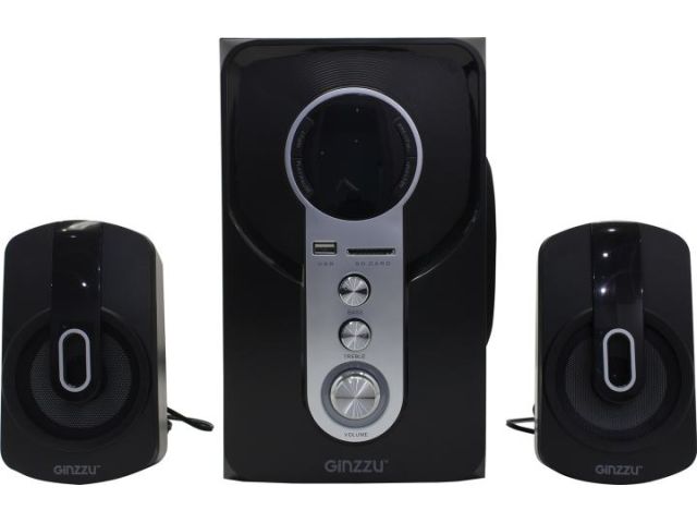 Колонки Ginzzu GM-405 (2x10W +Subwoofer 20W дерево, Bluetooth, USB, SD, FM, ПДУ)