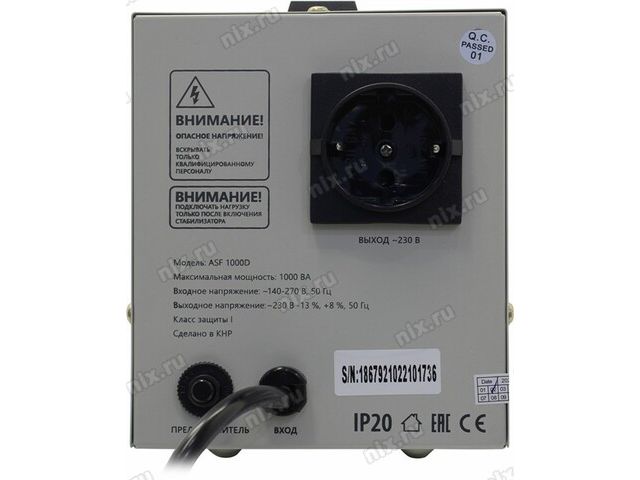 | Стабилизатор напряжения 1000 ВА 0.6 кВт Defender ASF 1000D 1 розетка евростандарт с заземлением 1 метр |