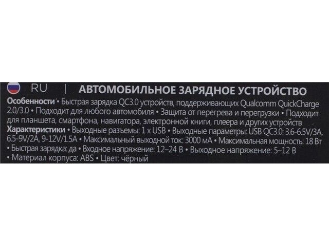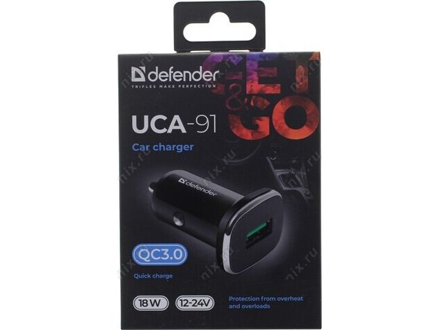 Defender UCA-91 83830 Автомобильное зарядное уст-во USB (Вх.12-24V, Вых.5/9/12V, 18W, USB)