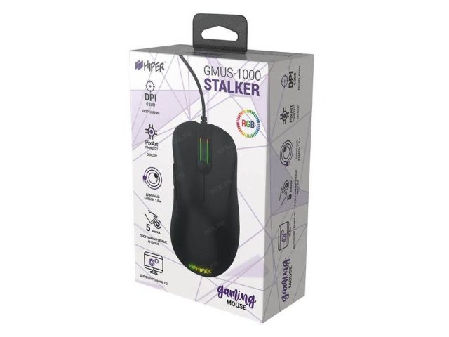 HIPER STALKER Игровая мышь чёрная (USB, 7 кнопок, 6000 dpi, PMW3327, OMRON+Kailh, RGB подсветка)