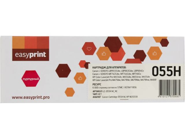 Картридж EasyPrint LC-055H M-NC Magenta для HP M454/455/479/480, Canon LBP653/635/664, MF747