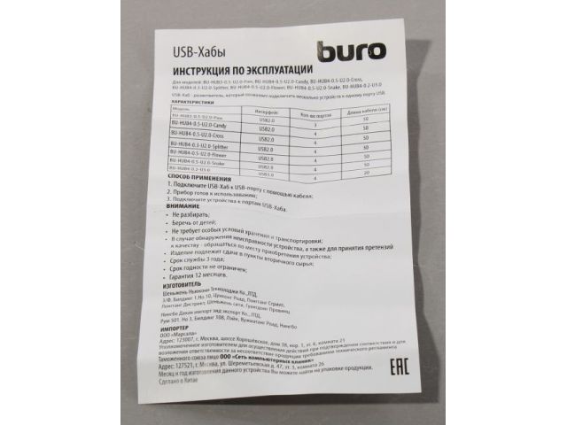 МодельBU-HUB4-0.3-U2.0-Splitter