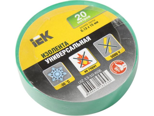 IEK UIZ-13-10-K06 Изолента ПВХ (зелёная, 15x0.13мм, 20м)