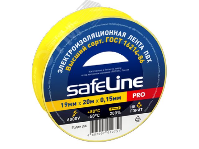 SafeLine 9367 Изолента ПВХ желтая 19мм 20м (9367)