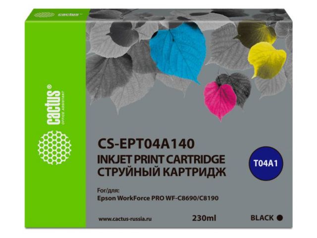 Картридж струйный Cactus CS-EPT04A140 черный (230мл) для Epson WorkForce Pro WF-C8190, WF-C8690