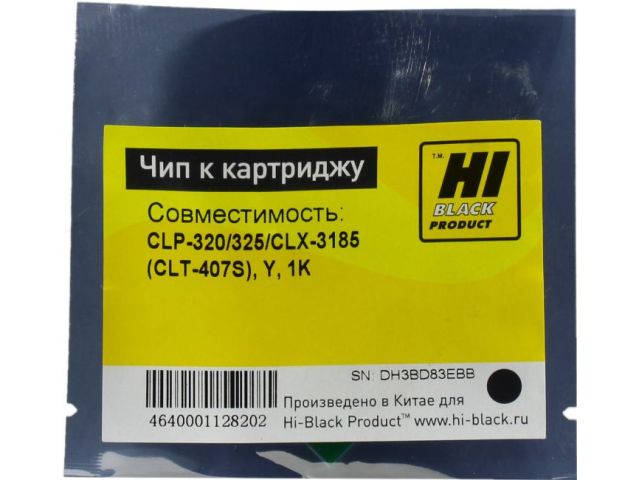 Чип Hi-Black для картриджей CLT-Y407S цветных печатающих устройств Samsung CLP-320, CLP-325, CLX-3185, CLX-3285 Цвет: желтый (Yellow) Ресурс чипа: 1000 копий