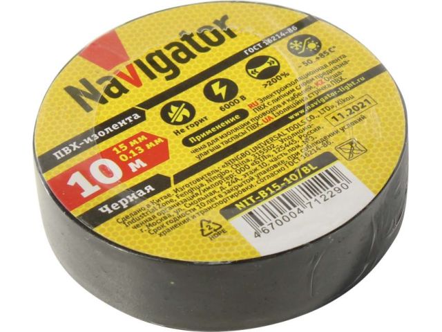 Navigator NIT-B15-10/BL Изолента ПВХ (чёрная, 15x0.13мм, 10м)