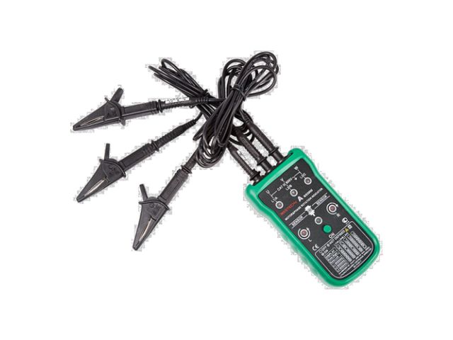 Детектор последовательности фаз MASTECH MS5900 (индикатор чередования фаз) предназначен для определения порядка чередования фаз в трехфазных цепях переменного тока, а также направления вращения трехфазных двигателей. Диапазоны измерений:Номинальное напряжение определения фазы: 120 В ~ 400 ВРабочая частота: 2 Гц ~ 400 ГцПотребляемый ток: ?20 мАФункциональные возможности:Световая индикация чередования фазПитание: 1 х 9 В (тип 6F22, 6LR61, «Крона») Комплект поставки: прибор, чехол для переноски, измерительные щупы с зажимами «крокодил», батарея, инструкция