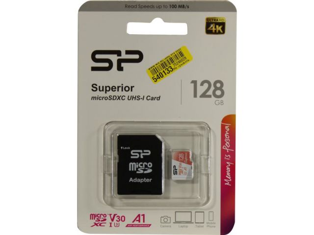 Карта памяти Silicon Power Superior SP128GBSTXDV3V20SP microSDXC A1, V30, UHS-I Class 3 (U3), Class 10 128 ГБ +microSD- SD адаптер
